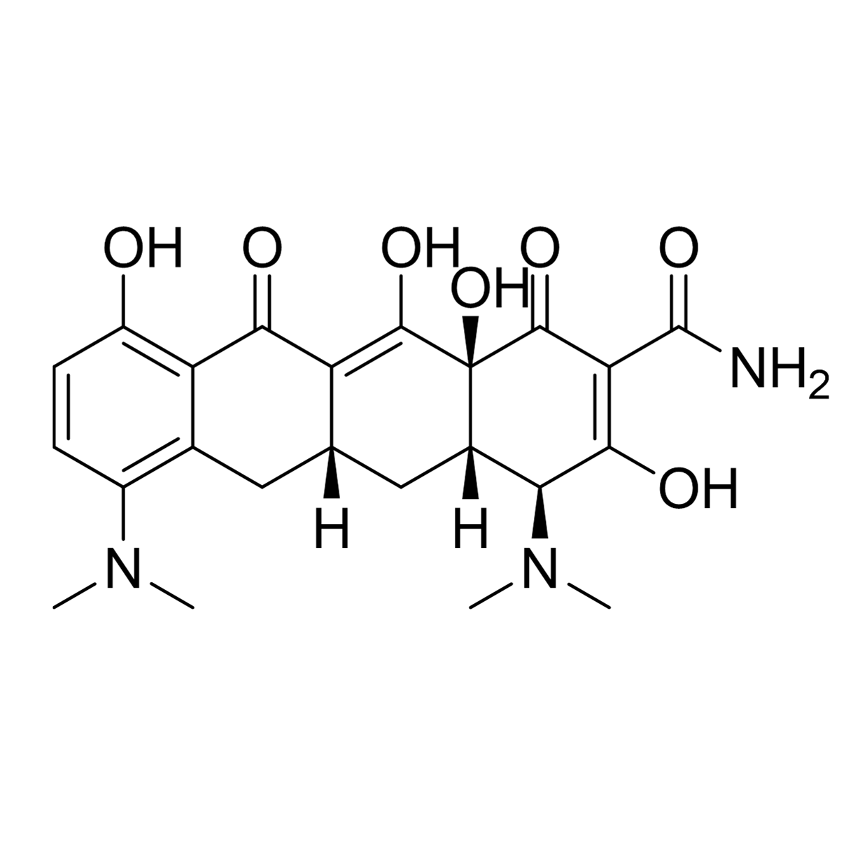 La minocycline est un antibiotique à large spectre appartenant à la classe des tétracyclines, efficace contre un large éventail d'infections bactériennes. Elle agit en inhibant la synthèse des protéines bactériennes, empêchant ainsi la croissance des bactéries. La minocycline a été développée dans les années 1960 comme dérivé semi-synthétique de la tétracycline. Elle a été conçue pour améliorer l'absorption orale, la pénétration tissulaire et la demi-vie par rapport aux tétracyclines plus anciennes. Ce médicament est devenu populaire pour le traitement de l'acné, des infections des voies respiratoires, des infections urinaires et de certaines infections sexuellement transmissibles. Sa capacité à pénétrer le système nerveux central l'a également rendu utile pour le traitement de certaines infections neurologiques. Au fil des ans, la minocycline a fait l'objet d'études pour ses propriétés anti-inflammatoires et neuroprotectrices. Elle est disponible sous forme orale et intraveineuse. Ce médicament est largement prescrit en raison de son efficacité et de son profil pharmacocinétique favorable. Aujourd'hui, la minocycline reste un antibiotique important en dermatologie et dans le traitement des maladies infectieuses en général.