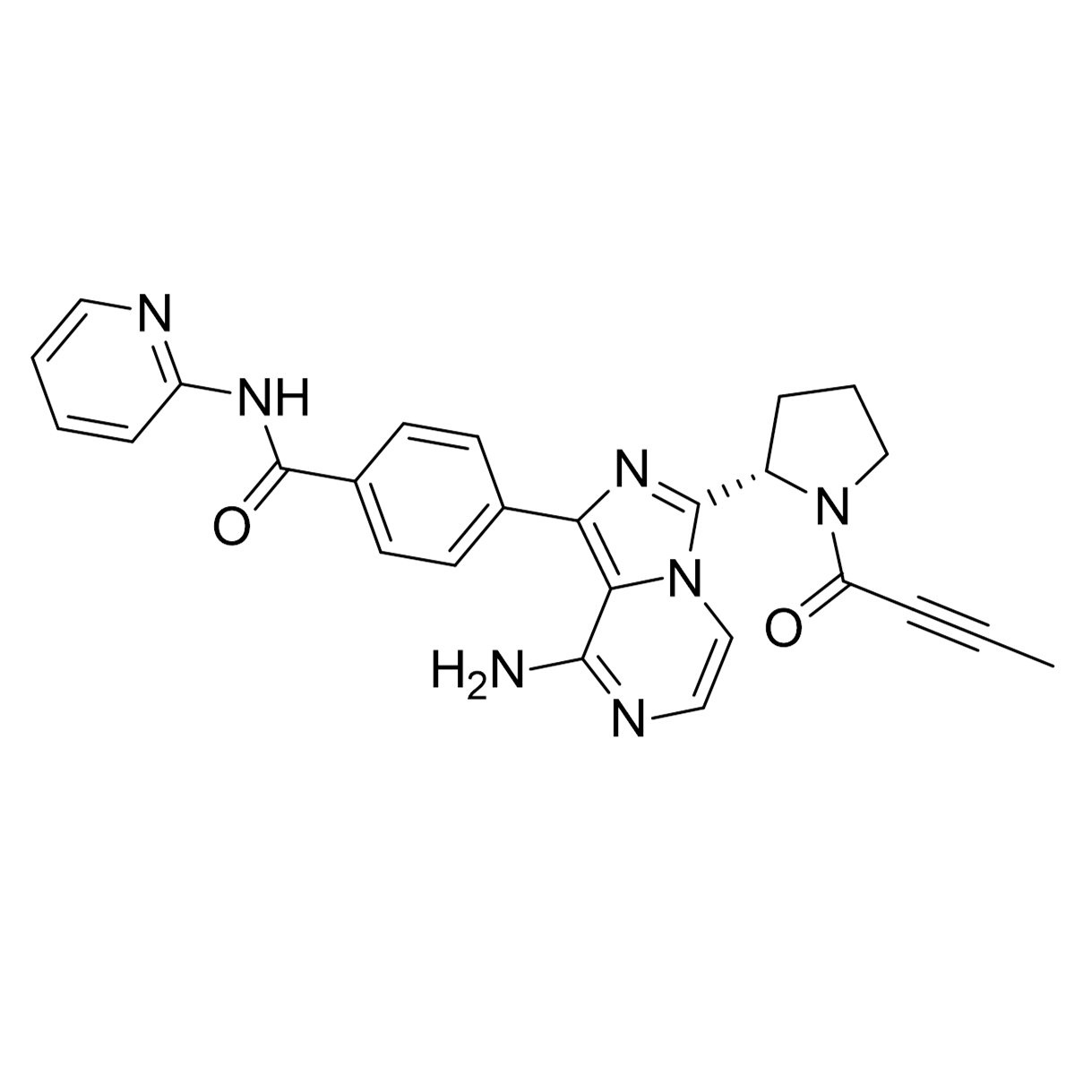 Acalabrutinib is a targeted oral therapy known as a Bruton's tyrosine kinase (BTK) inhibitor, which plays a critical role in blocking B-cell receptor signaling essential for the survival and proliferation of malignant B-cells. It was developed by Acerta Pharma, later part of AstraZeneca, as a more selective alternative to first-generation BTK inhibitors like ibrutinib, with the aim of reducing off-target effects such as bleeding and cardiovascular complications. Preclinical studies demonstrated its potent inhibition of BTK and favorable pharmacokinetics, paving the way for clinical trials. Phase I and II trials established its safety, tolerability, and initial efficacy in patients with relapsed or refractory chronic lymphocytic leukemia (CLL) and mantle cell lymphoma (MCL), while subsequent Phase III trials confirmed its effectiveness, leading to regulatory approval. The U.S. Food and Drug Administration (FDA) first approved acalabrutinib in 2017 for relapsed or refractory MCL, and later approvals expanded its use to CLL and small lymphocytic lymphoma (SLL). As a next-generation BTK inhibitor, acalabrutinib has become a significant advancement in the treatment of B-cell malignancies, offering comparable efficacy to earlier drugs with improved tolerability and safety.