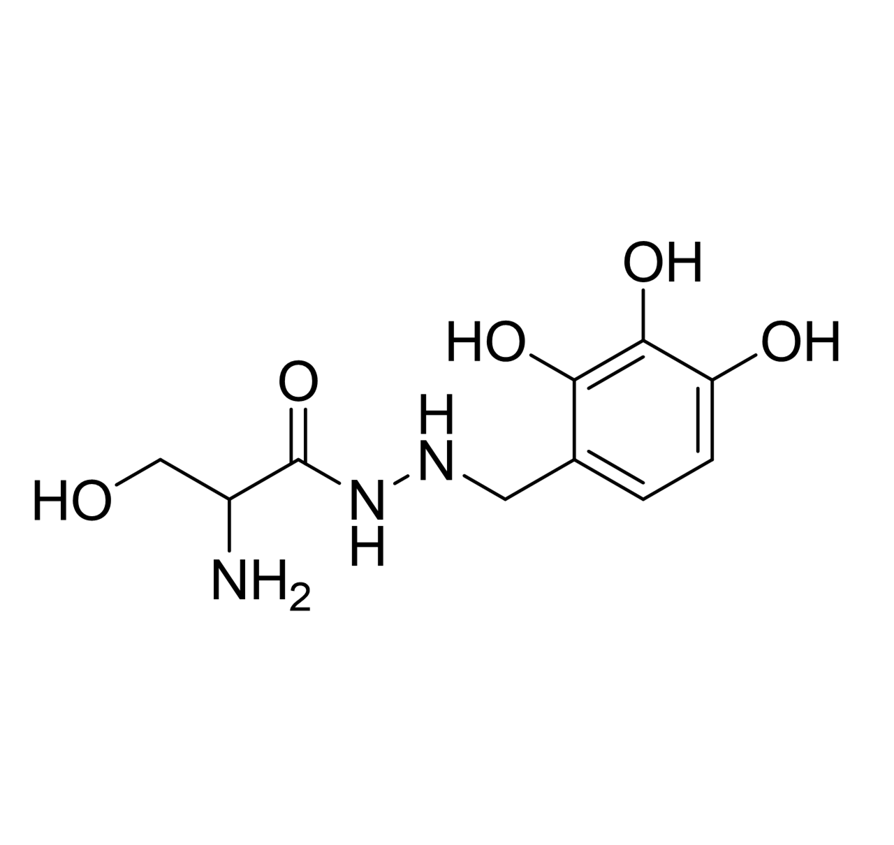 Benserazide is a peripheral dopa-decarboxylase inhibitor used in combination with levodopa in the treatment of Parkinson’s disease. Its main role is to prevent the breakdown of levodopa into dopamine outside the brain, allowing more levodopa to reach the central nervous system. This enhances the therapeutic effect of levodopa while reducing peripheral side effects such as nausea, vomiting, and cardiovascular effects. Benserazide itself does not cross the blood–brain barrier and has no direct effect on Parkinson’s symptoms when used alone. It is commonly formulated together with levodopa in fixed-dose combinations.