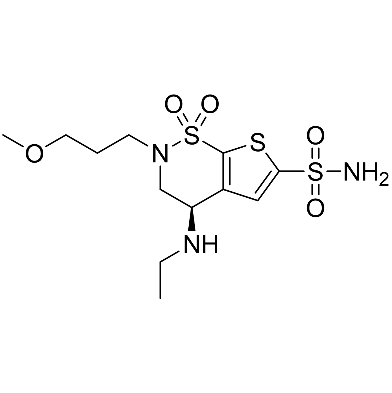 Brinzolamide is a carbonic anhydrase inhibitor used topically to lower intraocular pressure in patients with glaucoma or ocular hypertension. It works by inhibiting carbonic anhydrase in the ciliary body, reducing aqueous humor production and thereby decreasing intraocular pressure to protect the optic nerve and preserve vision. Developed in the late 20th century as a safer alternative to systemic carbonic anhydrase inhibitors like acetazolamide, brinzolamide was designed to provide effective IOP reduction with fewer systemic side effects. Approved for ophthalmic use in the early 2000s, it quickly became a widely used therapy for open-angle glaucoma and ocular hypertension, either alone or in combination with other agents, due to its favorable safety profile, convenient dosing, and ability to improve patient adherence.