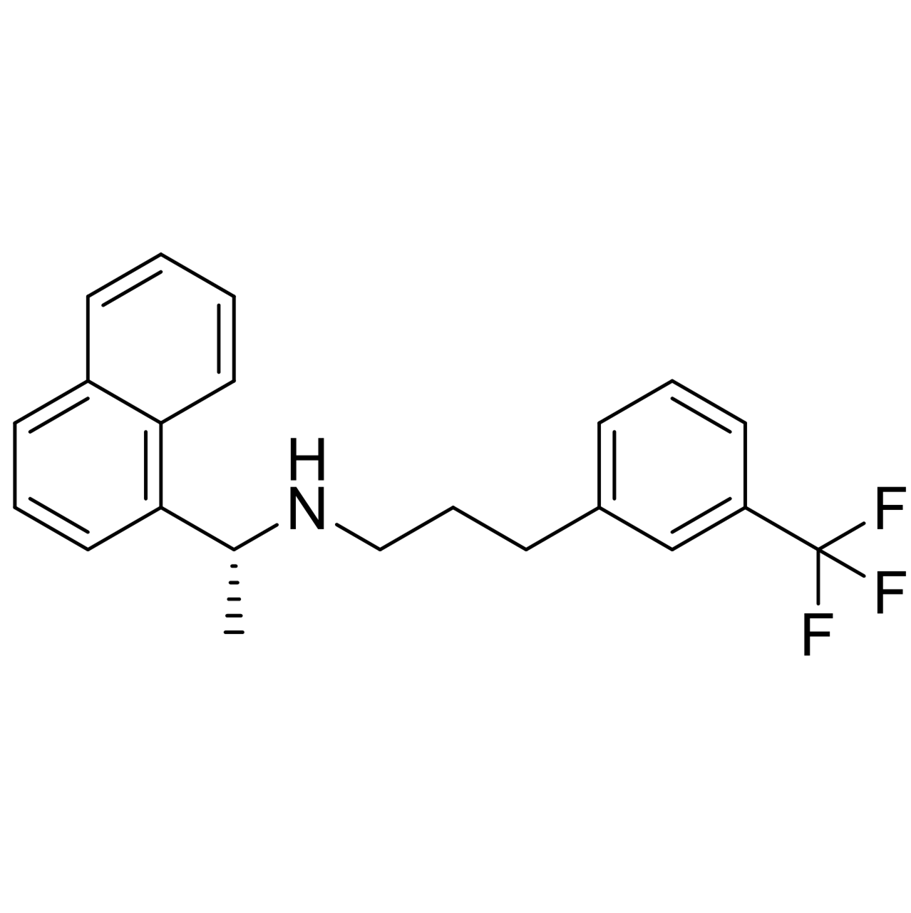 Cinacalcet is an oral calcimimetic drug used to treat secondary hyperparathyroidism in dialysis patients, hypercalcemia in parathyroid carcinoma, and primary hyperparathyroidism when surgery is not suitable. Developed by Amgen in the late 1990s and approved by the FDA in 2004, it represented a major advancement in non-surgical management of elevated parathyroid hormone (PTH) and calcium levels. Cinacalcet works by allosterically activating the calcium-sensing receptor (CaSR) on parathyroid cells, increasing their sensitivity to extracellular calcium, which suppresses PTH secretion and helps maintain calcium and phosphate balance. The drug is well absorbed orally, extensively metabolized in the liver, and primarily excreted via the feces, with a relatively long half-life that allows once-daily dosing in many cases. Its introduction offered a safer, targeted alternative to previous treatments like vitamin D analogs, phosphate binders, or surgical intervention, marking a significant milestone in endocrine and renal therapeutics.