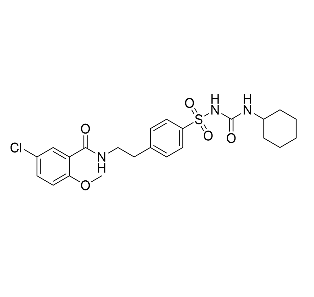 Glibenclamide, also known as glyburide, is a sulfonylurea oral hypoglycemic agent used in the management of type 2 diabetes mellitus, where it lowers blood glucose by stimulating insulin secretion from pancreatic β-cells, enhancing peripheral glucose uptake, and reducing hepatic glucose production. Developed in the 1960s as a second-generation sulfonylurea to improve efficacy and safety over earlier drugs like tolbutamide, it was introduced clinically in the late 1960s and early 1970s and quickly gained popularity due to its potent glucose-lowering effect and longer duration of action. Over time, glibenclamide has become a cornerstone in diabetes therapy worldwide, valued for its effectiveness, affordability, and extensive clinical experience, though careful monitoring is needed to prevent hypoglycemia, particularly in elderly patients or those with renal impairment.