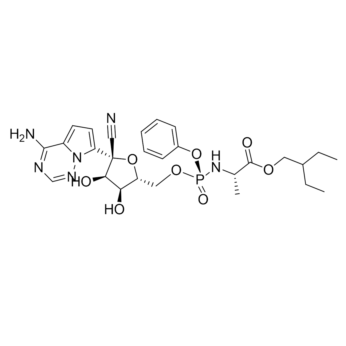 Remdesivir is a prodrug that mimics nucleotides and works by blocking viral RNA replication. Once metabolized in cells, it converts to its active triphosphate form, which competes with natural nucleotides. It binds to RNA-dependent RNA polymerase, causing premature termination of viral RNA synthesis. This mechanism prevents the virus from replicating effectively in host cells. It has demonstrated broad-spectrum activity against several RNA viruses, including coronaviruses.