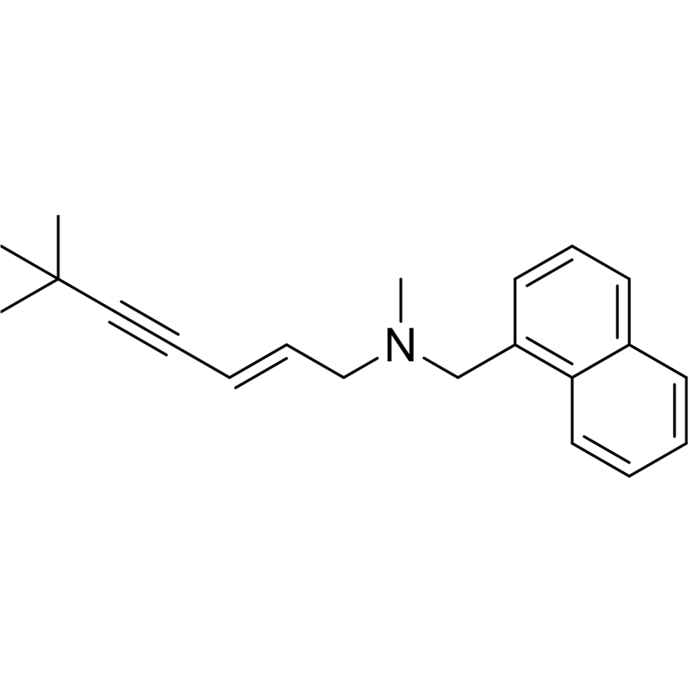 Terbinafine is a synthetic allylamine antifungal agent that was derived from naftifine through a chemical modification process that occurred in 1979. Terbinafine is an antifungal medication used to treat infections such as ringworm, athlete's foot, jock itch, and fungal nail infections. It belongs to the allylamine class and works by blocking the enzyme squalene epoxidase, which is essential for building fungal cell membranes. This interference ultimately results in the destruction of fungal cells. Terbinafine is particularly effective against dermatophytes—the fungi responsible for these common skin and nail infections—but it does not work against bacterial or viral infections.